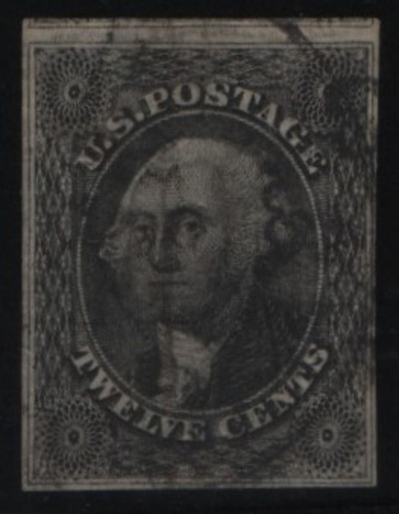 17 F-VF+ 12¢ gray black imperf, town cancels (Image)