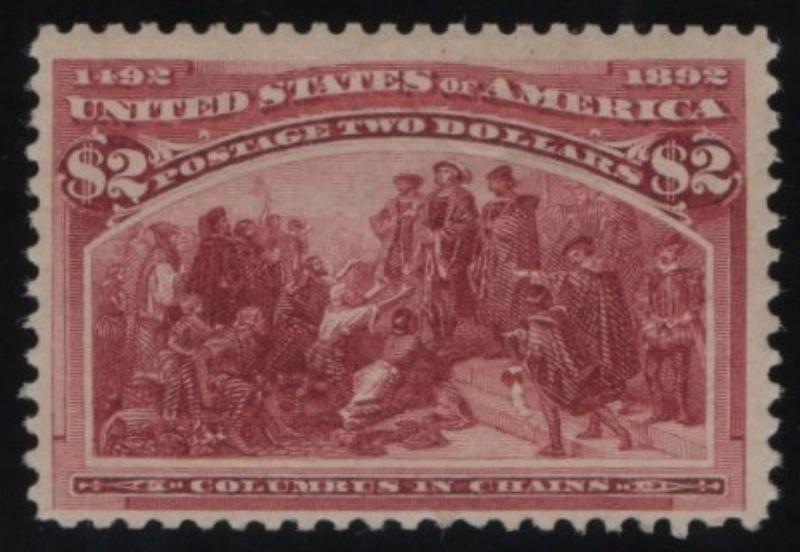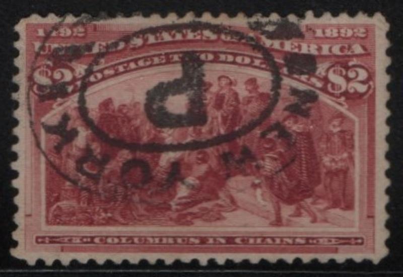 242 VF $2 brown red Columbian, thin, double oval cancel (Image)