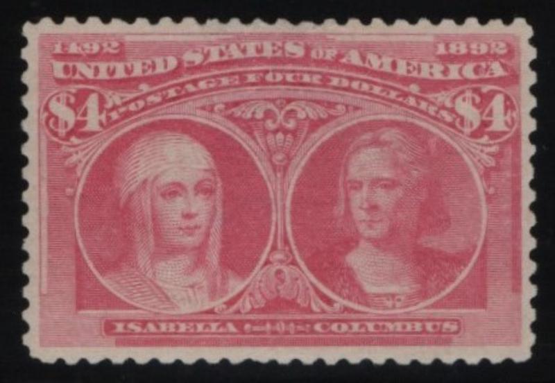 244 RG, $4 Columbian, 2019 APS Cert "thinned under regumming", VF+ centering (Image)