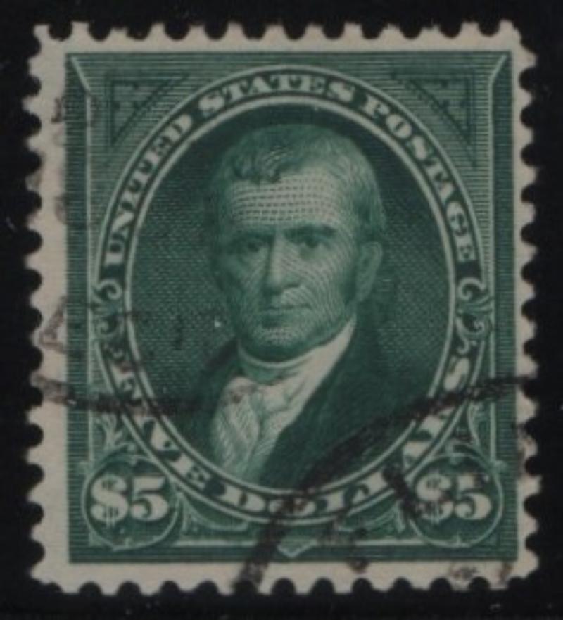 278 F-VF $5 dark green Marshall, parcel cancel (Image)