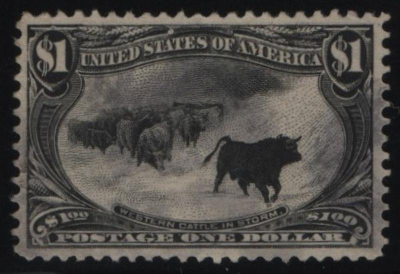 292 VF $1 black Trans-Miss, RP at right, light cancel (Image)