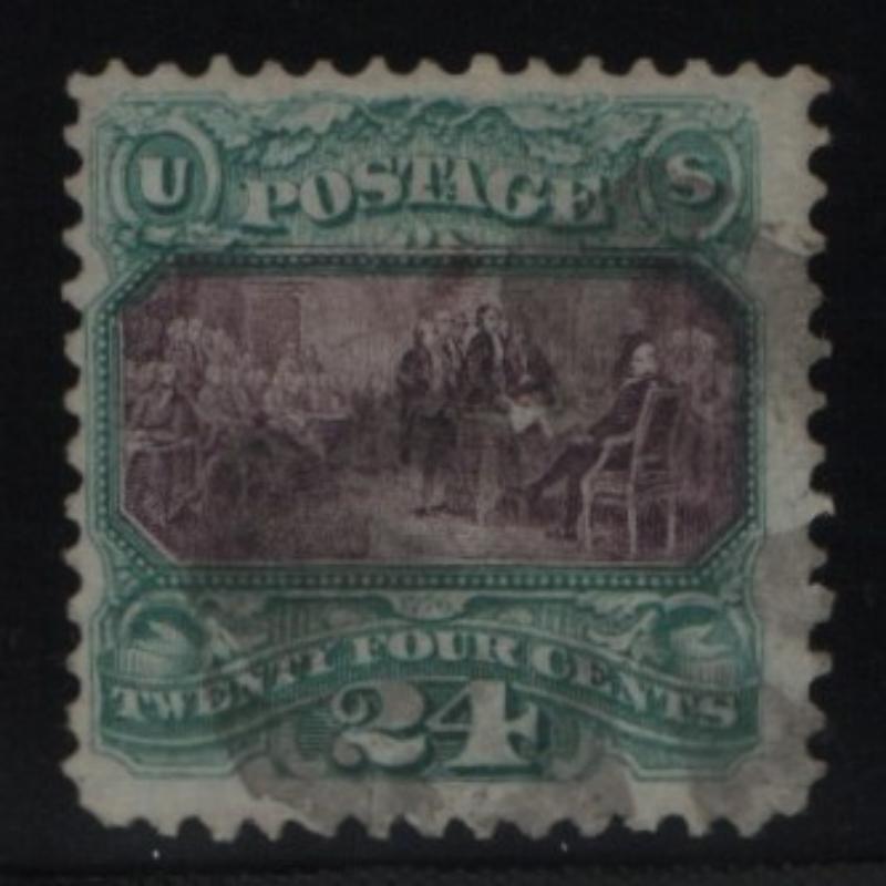 118 VF-XF Pictorial 15¢, attractive SON black rosette cancel, Graded 85 by 2025 PSAG Cert (CV is SMQ) (Image)