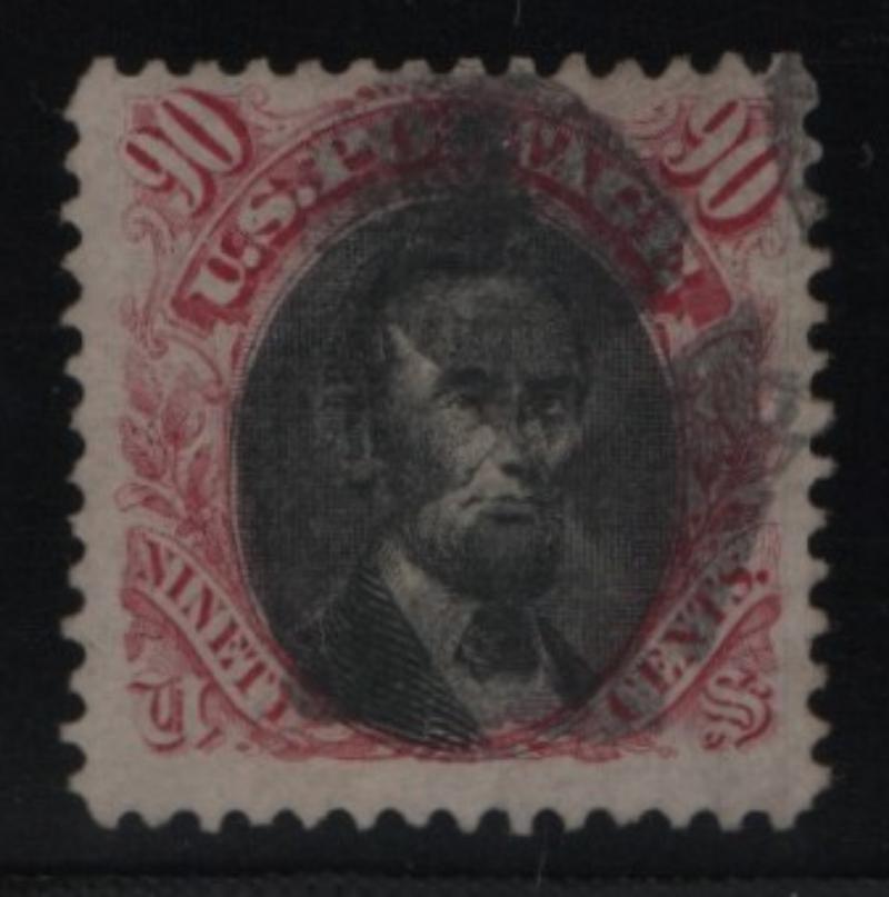 91 F-VF 15¢ black Lincoln w/ "E" grill, SP at left, red cancel (Image)