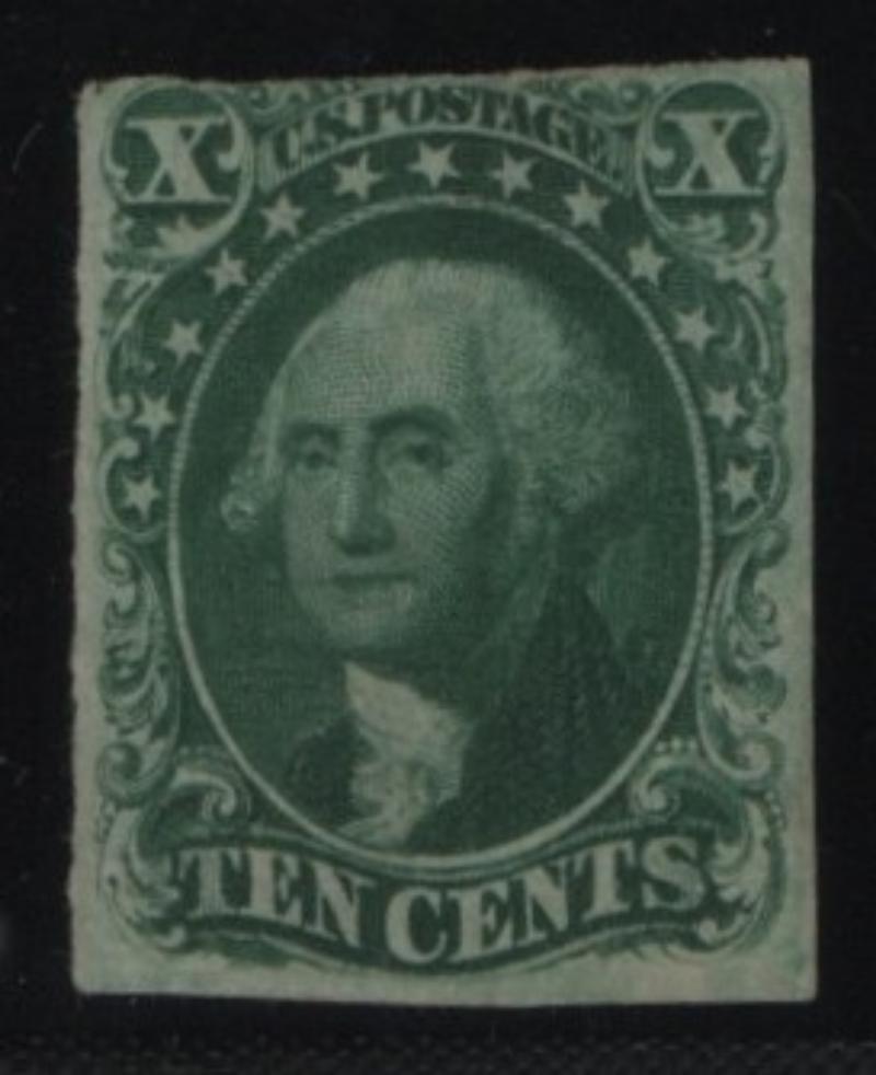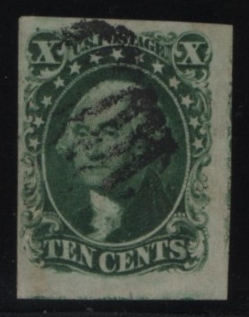 34 VF-XF 10¢ green Type IV, San (Francisco) cds, 1989 PF Cert, pos. 64L1 - the only position on the plate recut at top & bottom (Image)