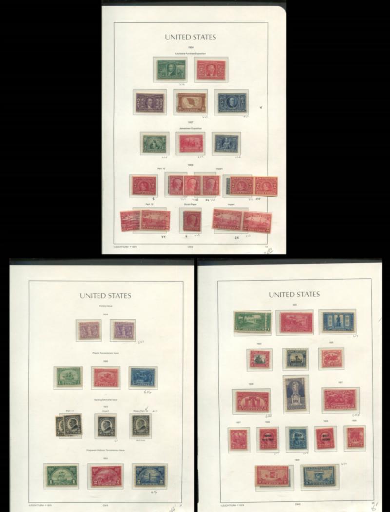USA 1904/1928, MH/MNH, includes 1904 Louisiana Purchase Exposition, 1907 Jamestown Exposition, Victory, Pilgrim Tercentenary, Harding Memorial, Huguenot-Walloon Tercentenary, Lexington-Concord, Norse-American, Aeronautics Conference and others, Cat. $1200 (Image)