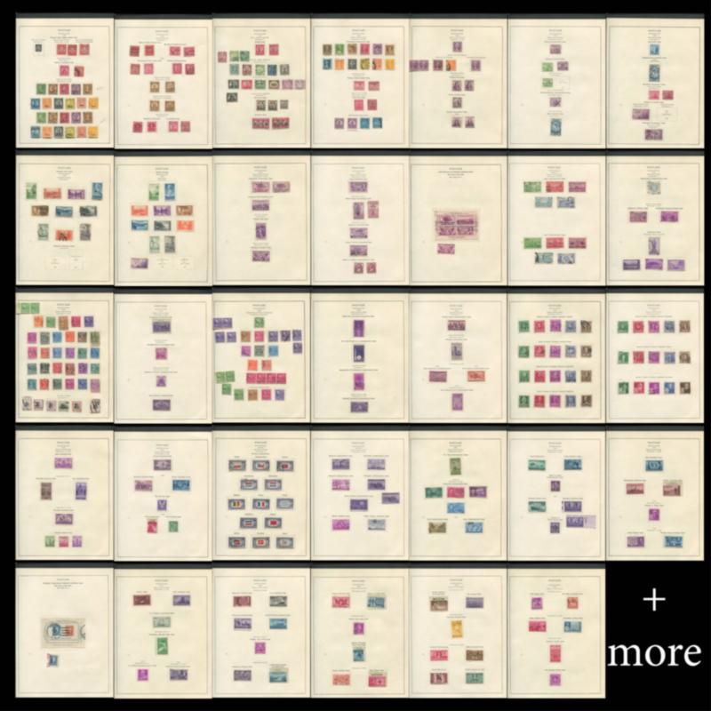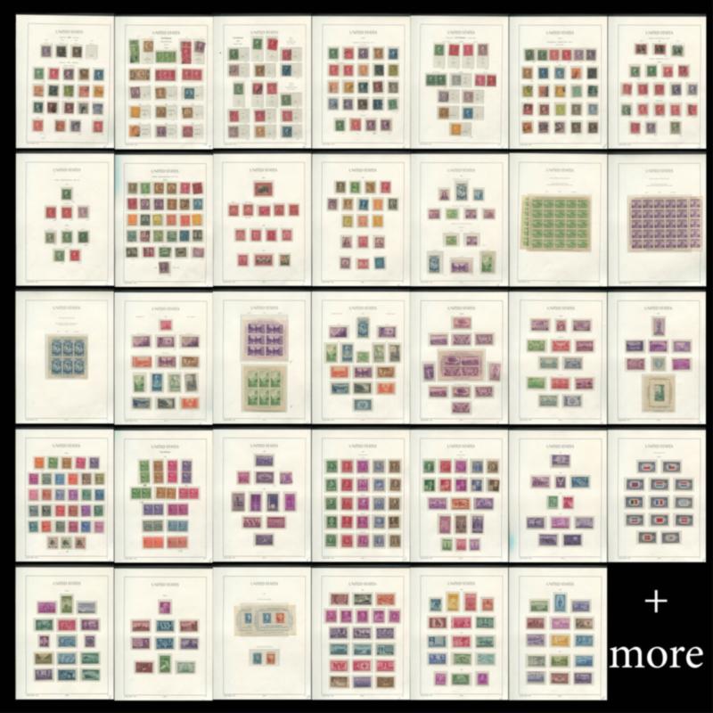 A mostly (vast majority) MNH with some mint, USA collection from 1936-1968 #785/#1354a, housed in a Lindner hingeless album. Substantially complete, including 1938 Presidential Issue ($1 and $5 hinged) with Coils (no pairs), American Authors/Poets/Educators/Scientists/Composers/Artists/Inventors, #C25-#C31, substantially complete to 1961, and a fair amount of material through to 1968. Clean, fresh and generally, at least f-vf throughout. (Image)