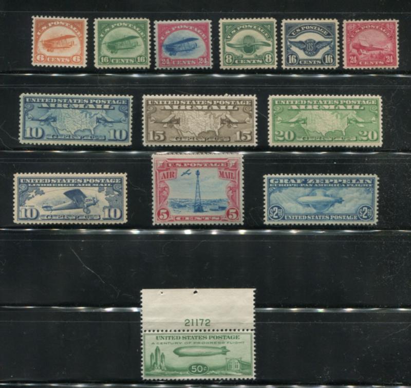 USA 1918-1933 #C1/#C18 Mint. Fresh and attractive, including #C15 $2.60 Blue. Total Scott- $916. (Image)