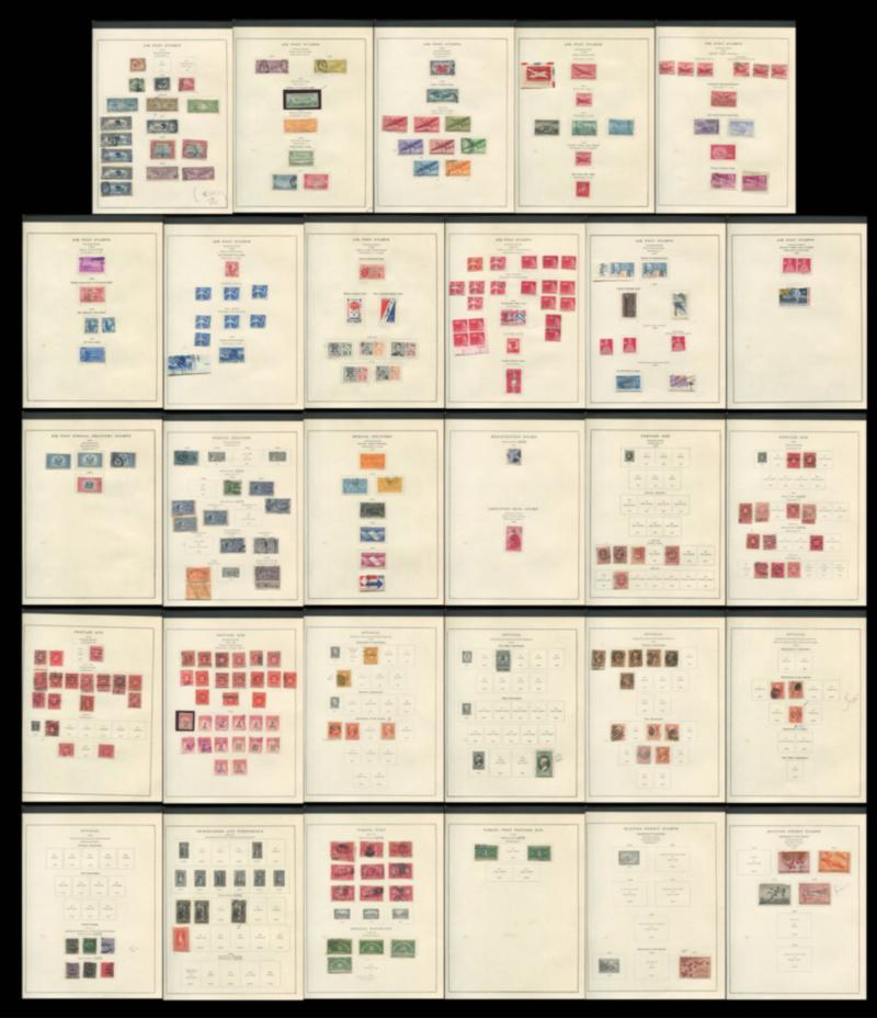 A predominantly used USA BOB collection, neatly hinged on loose Scott leaves, from #C6/#RW13. Includes Airs to #C76 (no Graf Zeppelins) with #C1, #C4-#C6, #C18 MNH, etc. Special Delivery to #E22 with #E2, #E7, #F1. Dues from #J22/#J104, Officials including #O6, #O18 mint, #O102, etc. Parcel Post #Q1-#Q9, #RW8 mint, etc. A nice BOB collection, generally f-vf throughout. Owner's Cat val- $2,000+. (Image)