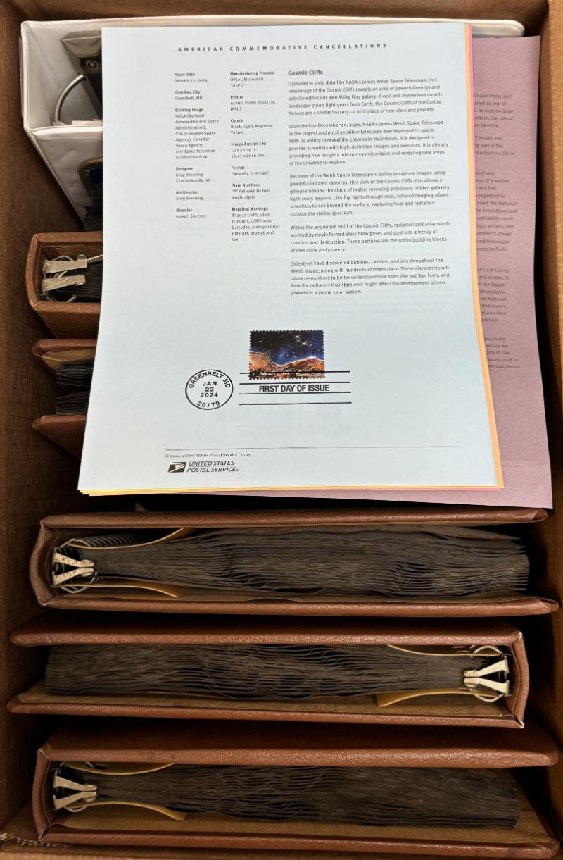 Collection (28) binders filled w/ plastic pgs "no holes punched" w/ (1000+) souvenir pgs (missing Family Planning), may be others missing, 1972-2023, mostly VF (Image)
