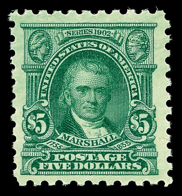 1917, $5 light green, perf. 10 (Scott 480), o.g., never hinged, wonderfully fresh with rich color and clean impression, nearly Very Fine, with 1981 P.F. certificate. Scott $375. (Image)