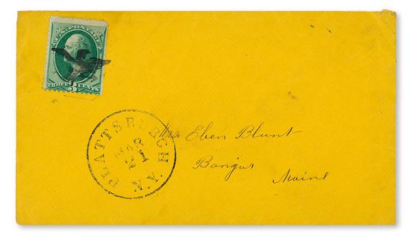 Eagle with Arrow (Plattsburgh, NY), clean strike tying 3¢ green Washington (#147) on orangish cover to Bangor, Maine; Plattsburgh Mar. 21 postmark below, Very Fine, an attractive strike, with 2024 P.F. certificate. (Image)