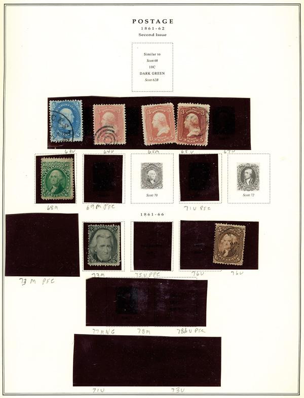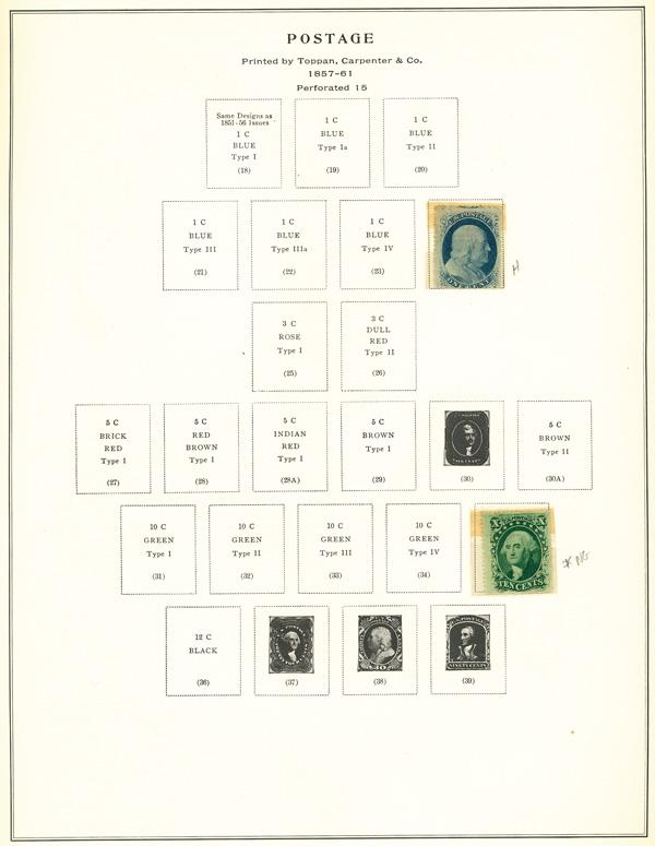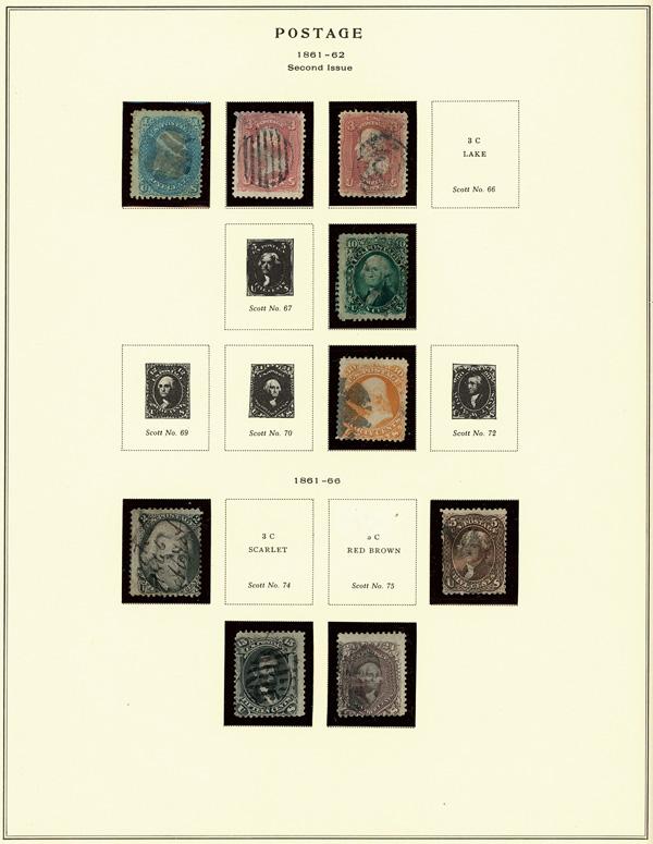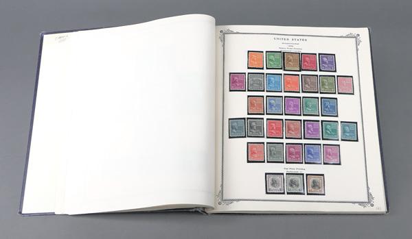 Quaint Mixed Collection, 1851-1947, 1947 Scott's American Album for US Stamps with nicely colocated mint and used in black mounts; used include #10, 11, 24, 35, 63, 69, 71, 73, 76, 78, 98, 112-115, 117, 118, 148, 153, 160, 162, 165, 190, 217, 218, 226-229, 260, 274-276, 291, 310, 479, 480, 547, 599A, C2, C6, J19, J20, J24, J25, O19-O21, O73-O78, O93, Q10-Q12; unused #221, 228, 250, 257, 258, 230-239, 289, 290, 294-299, 305-308, 398-400, 614-623, National Parks, Special Printings, Prexies to $5 Coolidge, E2, E4, J3, J26, Q1-Q9; consignor catalog $20,400, Fine to Very Fine. Shipping charges apply - weight 2.8 lbs. (PDF for this Lot) (Image)