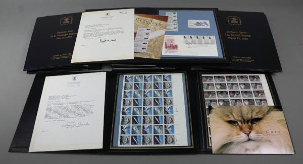 Congressional Presentations Collection, 1985-90, 15 personalized USPS new issue presentation folders with the Chairman of the Committee on Appropriations name embossed; includes Enrico Caruso, Classic Mail Transportation, Penalty Mail, North Carolina Statehood, Ambulance and Buckboard, Drafting of the Constitution, America Commemorative and Airmail, Oil Wagon and Pushcart, Francis Ouimet, Washington Statehood, Rural Electrification Administration, Moon Landing Priority Mail, Junipero Serra, Cats, and Future Mail Transportation; very seldom encountered, Very Fine. Shipping charges apply - weight 17 lbs. (PDF for this Lot) (Image)