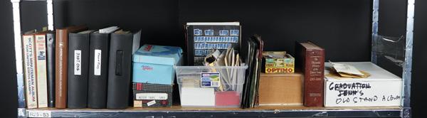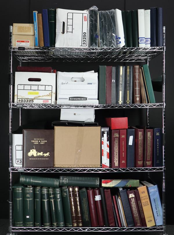 Cartload of philatelic supplies, Lighthouse cover binders, hardcover mint sheet files, Scott Plate Number Coils (1981-1988), Scott Postal Cards (1875-1975), pair of Scott National albums (1847-1985), two new Kiribati albums (1978-1983), Mystic Heirloom (2006-2018), Fidelity (2 vol) People's Republic of China (1950-1969 and 1969-1978), Harris Plate Blocks (1964-1971), Harris Liberty (2000-2012), several new SAFE binders, SAFE hingeless Germany (1996-2000), hundreds of clear and black mounts, 7 USPS Yearbooks (1994//2001), 2 boxes (1,000 each) #7 envelopes, and more. Shipping charges apply - weight 380 lbs. (Image)