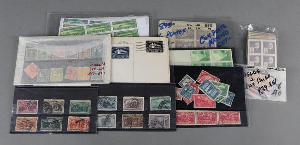 Classics, Blocks, and Plates, 1892-1940, diminutive holding of singles, blocks and plate blocks; used #230-241, and 551-571; mint include #614-621, 644 (plate block of 6), 646-648, 756-765 (Special Printings plate blocks of 6 complete), 839-851 coil singles and line pairs, 855 complete matched set of Baseball plate blocks (16 in all), and complete set of Famous Americans blocks of 4 (with plate numbers folded over); and more. Shipping charges apply - weight 0.6 lbs. (PDF for this Lot) (Image)