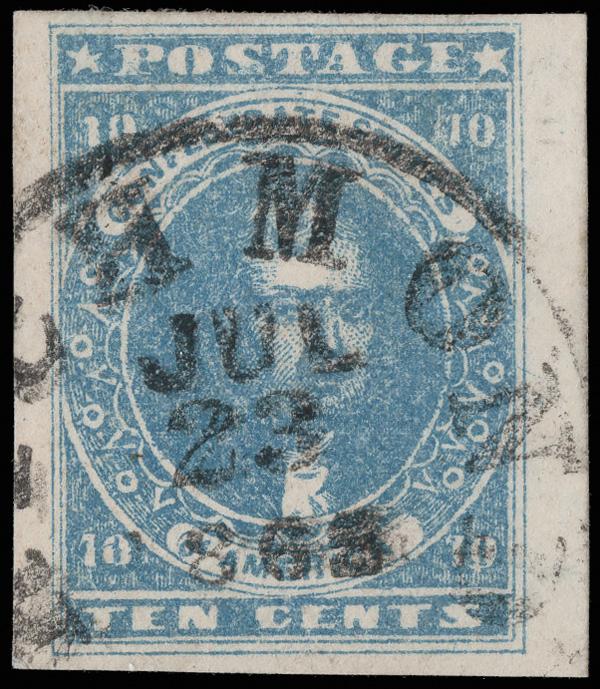 1861, 10¢ blue, Patterson printing (Scott 2), ample to oversize margins with fresh color and a clear Richmond town cancel, Jul 23, 1865, Very Fine, with a 2024 P.F. certificate. Scott $180. (Image)