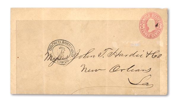 Envelope, 1864, Nesbitt 4th Issue, 3¢ pink (Scott U58), with 'OUACHITA RIVER PACKET/MAYFLOWER' double oval cds; facial scuffs, Fine to Very Fine. (Image)