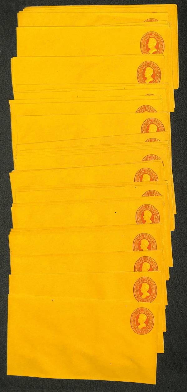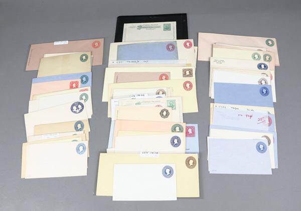 Better Entires and Wrappers Collection, 1860-1904, 92 mint entires and wrappers with minimal duplication; includes #U19//U398, U289 with Wells Fargo imprint; catalog $1,500, Fine to Very Fine. Shipping charges apply - weight 1 lbs. (Image)