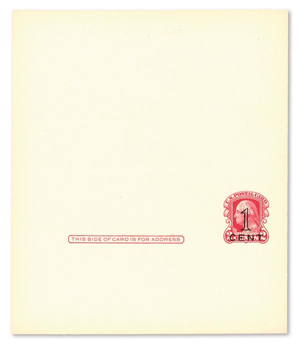 Official Postal Card, 1913, 1¢ black (Scott UZ1), pre-printed address of the Third Assistant Postmaster General and "Post Card." on front and Form PS 541 printed on reverse as always, exceptional condition with sharp corners, Extremely Fine. Scott $700. (Image)