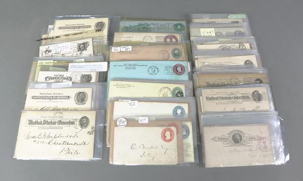 Old-School Postal Stationery Holding, 1873-1917, about 240 (mostly used) postal cards (185) and postal entires (55); postal cards including #UX3, UX5, UX7, UX8, UX9, UX12, UX14, UX18, UX20, UX21, UX22, UX24, UY1 (unsevered), and UY9R; entires include U9, U10, U35, U74, U76, U174; interesting fancy cancels, auxiliary markings, Fine to Very Fine. Shipping charges apply - weight 3.2 lbs. (Image)