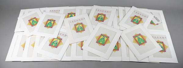 Legends of Baseball Scrapbook and Album, 1989, USPS produced a delightful product (Item #8831) that consists of the scrapbook, stamps amd black mounts, and baseball cards; the perfect crossover collectable for kids; lot includes 38 examples in the original windowed envelope; cool, Very Fine. Shipping charges apply - weight 13.4 lbs. (Image)