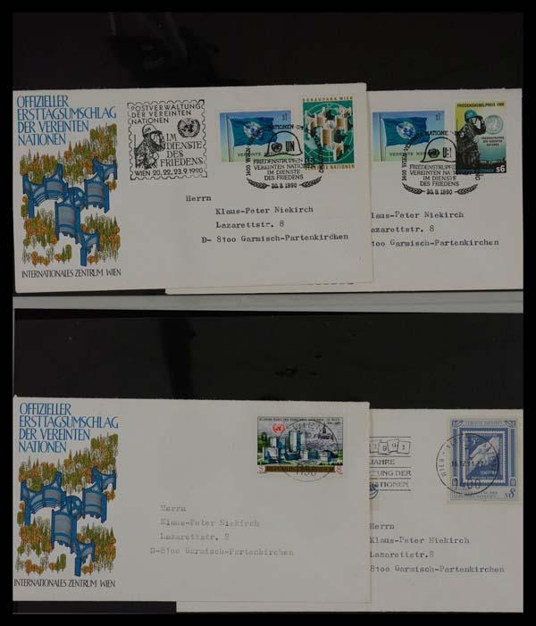 United Nations, First Day Covers Collection, 1957-2003, extensive collection FDC's, covers and cards of the United Nations 1957-2003 in seven albums with slipcases; collection contains ca. 600 items and also some never hinged material, fully imaged online; unavailable for in-person viewing. (PDF for this Lot) (PDF2 for this Lot) (Image)