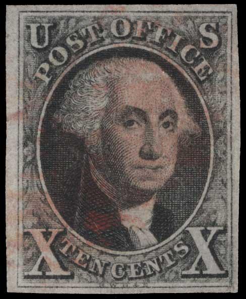 1847, 10c BLACK WITH RED CANCEL, #2, four well-balanced margins, very fine - extremely fine, with 2026 P.F. cert. graded '85', cat. $850, SMQ $1,100.00 (Image)