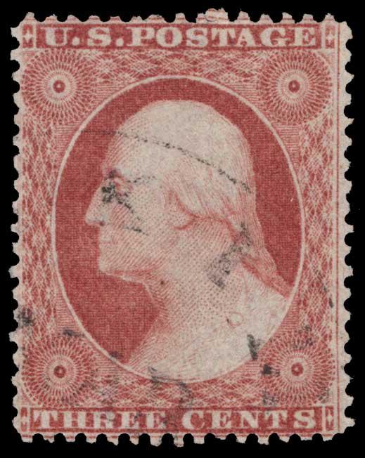 1857, 3c CLARET TYPE I USED, #25, well-centered, town cancel, very fine, with 2026 P.F. cert. graded '80', cat. $200.00 (Image)
