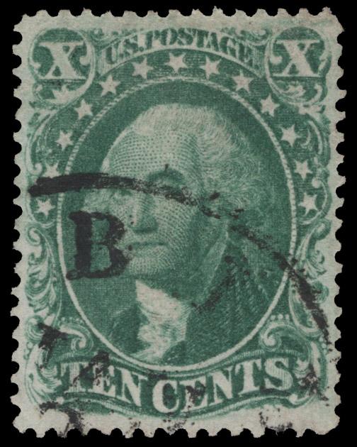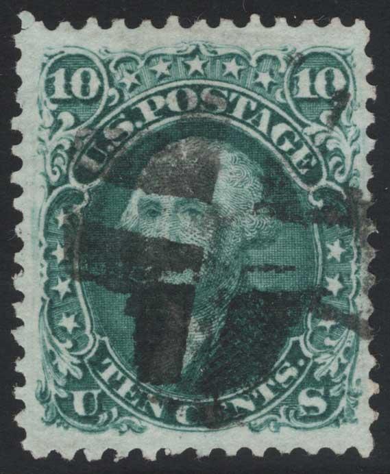 1868, 10c GREEN "E" GRILL USED, #89, well-centered, light cancel, very fine, with 2026 P.F. cert., cat. $350.00 (Image)