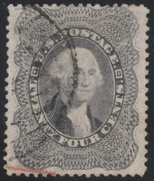 1860, 24c GRAY LILAC USED, #37, attractive single with black town d.s. and a small portion of a red transit cancel, fine-very fine, with 2026 P.F. cert., cat. $465.00 (Image)