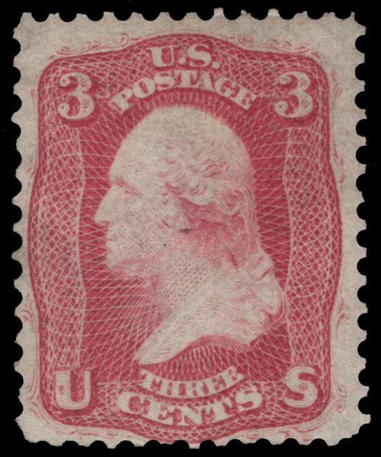 1861, 3c DEEP PINK "PREMIERE GRAVURE" UNUSED, formerly $56, #65E15h, regummed, fine-very fine, with 2026 P.F. cert., cat. $475.00 (Image)