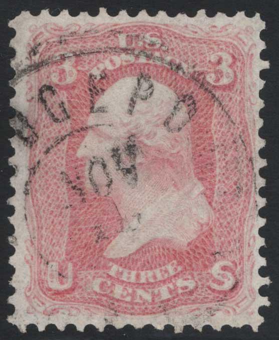 1861, 3c ROSE PINK USED, #64b, well-centered, town cancel, slight diagonal crease, very fine, with 2026 P.F. cert., cat. $160.00 (Image)