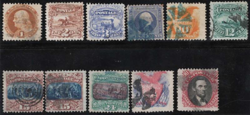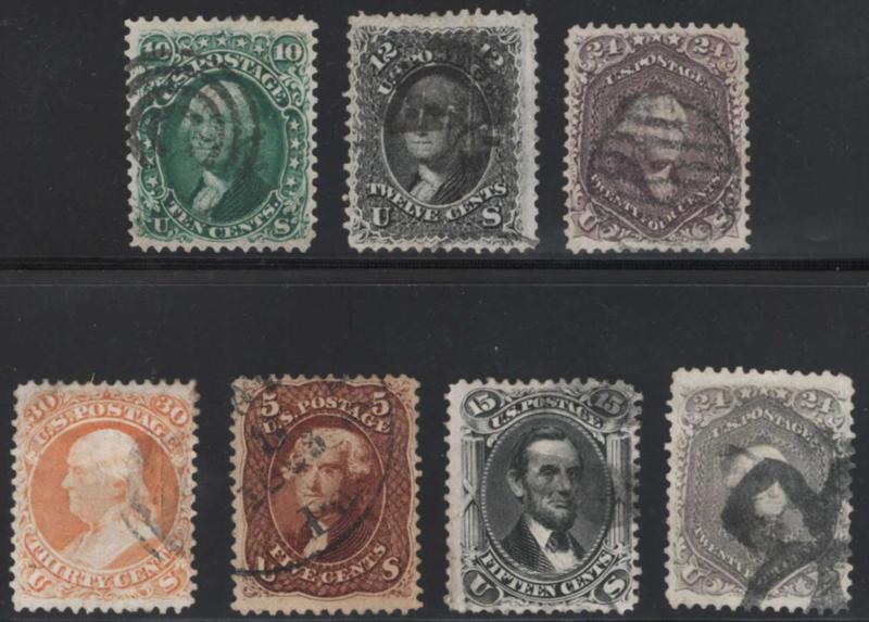 1861-63 ISSUE USED GROUP, #68-71, 75, 77, 78, few with small flaws, attractive group, cat. $1,785.00 (Image)