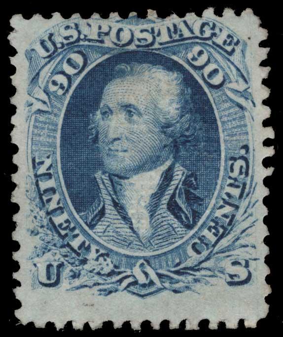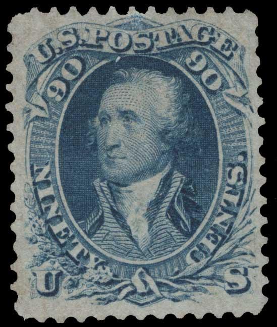 1868, 90c BLUE "F" GRILL MINT, #101, strong impression in a deep shade, distinct grill impression, o.g., previously hinged, fine, with 2017 PSAG cert., cat. $16,000.00 (Image)