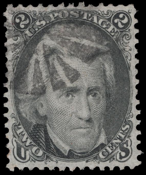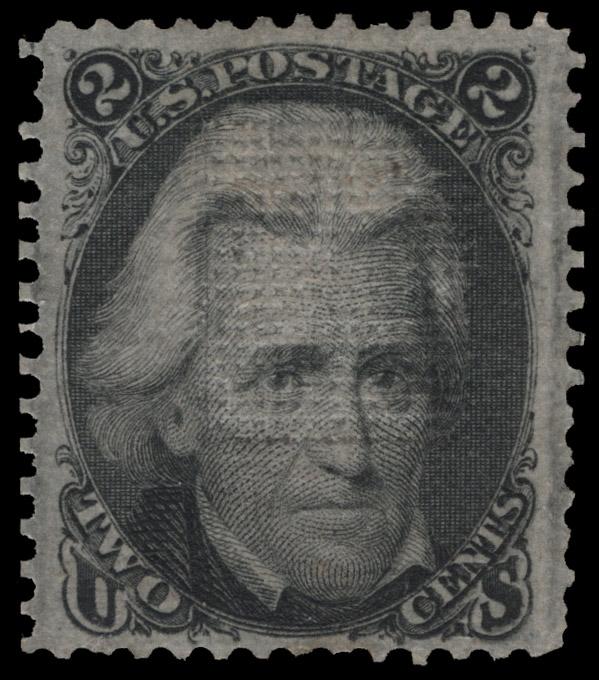 1863, 2c BLACK USED GRADED #95, gorgeous used stamp in excellent centering, neat, unobtrusive circle of "V" cancel, extremely fine - superb, with 2008 PSE cert., in spite of the 2-cent Black Jack being quite common, only five grade higher according to PSE's census, SMQ $950.00 (Image)