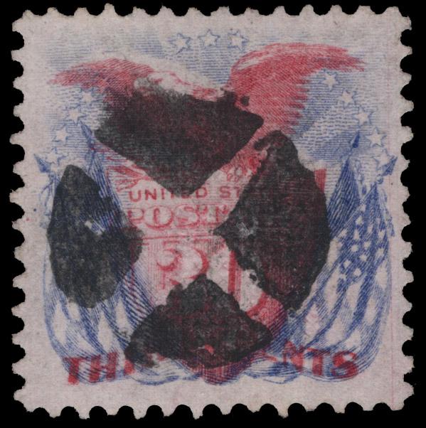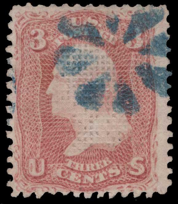 1867, 3c ROSE "C" GRILL BLUE ROSETTE CANCEL, #83, attractive, fine-very fine, with 2026 P.F. cert., cat. $1,150.00 (Image)