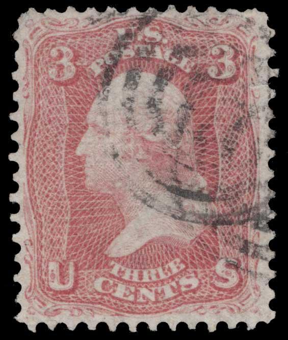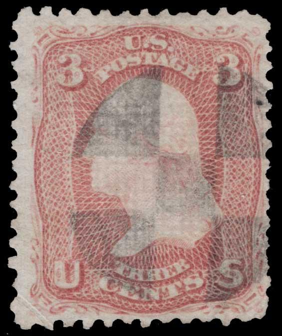 1868, 3c ROSE "D" GRILL USED, #85, well-centered with target cancel, tiny thin spot, fine-very fine, with 2026 P.F. cert., cat. $1,050.00 (Image)