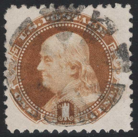 1880, 1c BROWN ORANGE RE-ISSUE ON SOFT USED, #133a, circle of wedges cancel, fine-very fine, with 2026 P.F. cert., cat. $650.00 (Image)