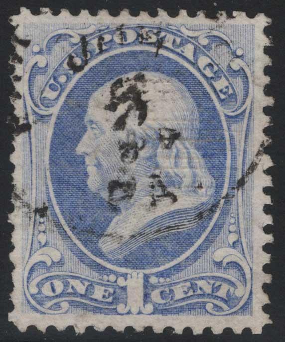 1870, 1c ULTRAMARINE "I" GRILL USED, #134A, quite well-centered, town cancel, single pulled perf, fine-very fine, with 2026 P.F. cert., cat. $400.00 (Image)