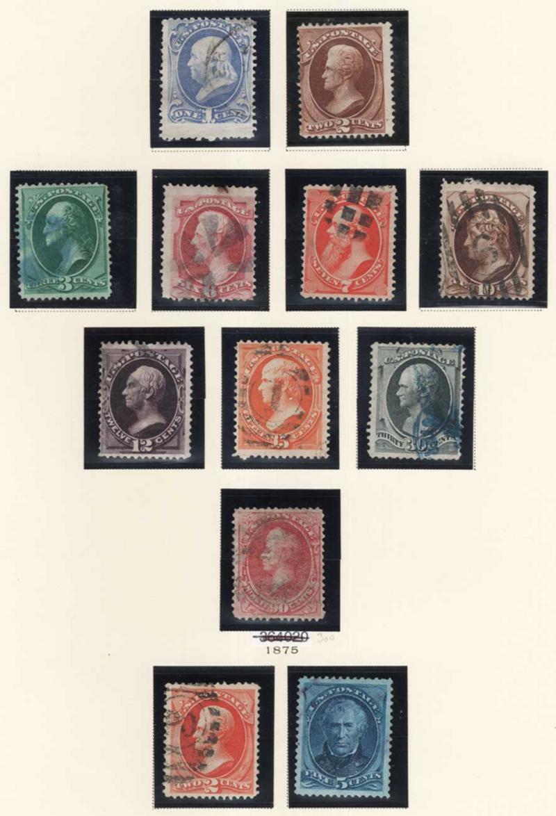 US BANKNOTE ISSUES 1870-88 USED ON SCOTT PAGES - CV $3,700, 145//218, complete run of the issues with the exception of any grills and special printings, few flaws to be expected, many in notable attractive centering, cat. $3,700.00 (Image)
