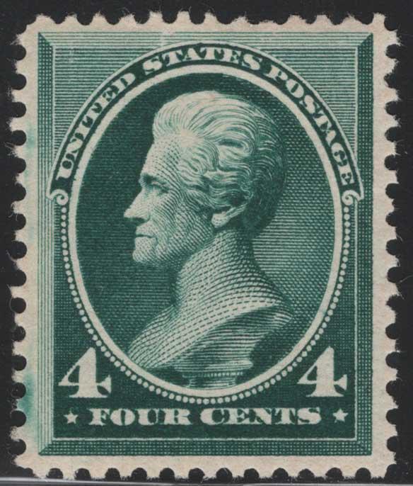 1883, 4c BLUE GREEN MINT, #211, well-centered, a touch of extraneous green ink from production at left, o.g., previously hinged, very fine, cat. $225.00 (Image)