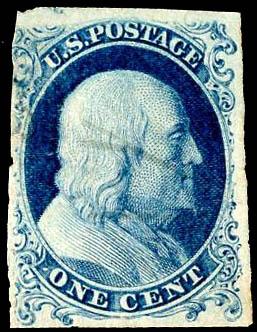 1851, 1¢ blue, type Ic, "E" relief (6b). Position 81R4, margins essentially all around, sheet margin at left, beautiful color on bright paper, neat town postmark and lightened ms cancel, slight thins and unnoticeable scuff in top left margin (well clear of design), a Superb appearing example of this scarce type (photo). $2,000 US$0 (Image)
