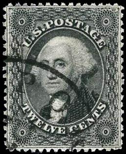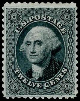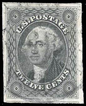1857-60 (1875 Reprint), 12¢ greenish black (44). Without gum as issued, well centered for this difficult denomination with perforations clear of design all around, quite scarce thus, rich color, prooflike impression, Very Fine (photo). $3,000