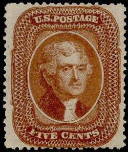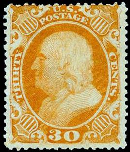 1860, 30¢ orange (38). Large part original gum, bright rich color, trivial thin speck, fresh Fine (photo). $1,900 US$0 (Image)