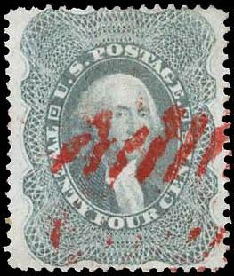 1860, 24¢ gray (37a). Well centered, bright color and paper with pretty red grid cancel, Very Fine, handsome (photo). $465