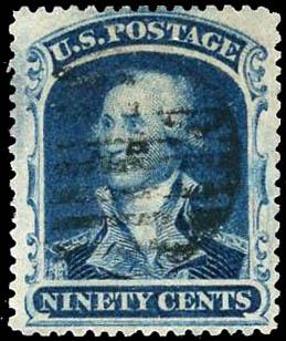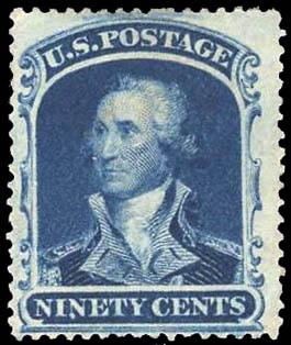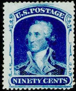 1860, 90¢ blue (39). Regummed over tiny thin speck, bright rich color, fresh Fine appearance (photo). $1,400 US$0 (Image)