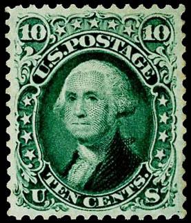 1861, 10¢ dark green (68a). Original gum expertly redistributed, outstanding centering, fresh rich color, Extremely Fine (photo). $1,350