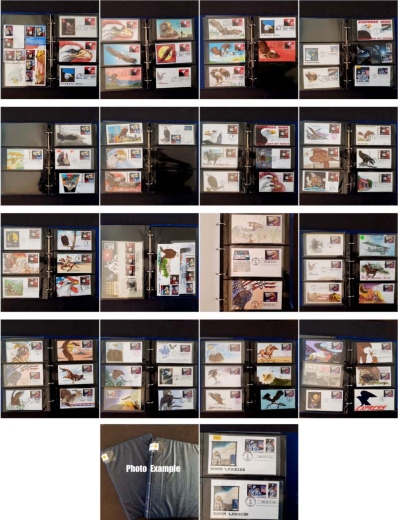 EXPRESS MAIL HANDPAINTED FDC COLLECTION, includes 51 different covers, contained in a cover album, virtually all are handpainted with a few Colorano covers included, many various artists here for the four issues, the overall condition is very clean with maybe a scattered fault, all of the covers in this group are duplicated with the larger collection being offered elsewhere in this section, many of these covers retail in the $50-100 range and some of the better covers are over $200 each; the retail value of this collection is easily well over $4,000 especially if acquiring them one-by-one, a really great start into this always popular area.