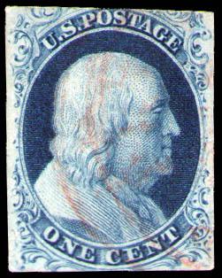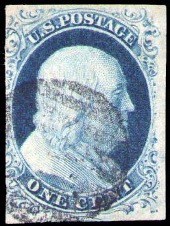 1851, 1¢ Franklin, blue, type II (Scott 7), attractive margins, Fine to Very Fine. Scott $140. Estimate $60 - 80. Scott $140 Suggested Bid $60-80 (Image)