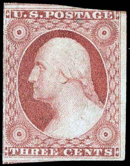 1852, 3¢ Washington, dull red, type I (Scott 11), 3½ nice margins, part o.g., Very Good to Fine, with 2025 P.S.A.G. certificate. Scott $250. Estimate $40 - 60. Scott $250 Suggested Bid $40-60 (Image)